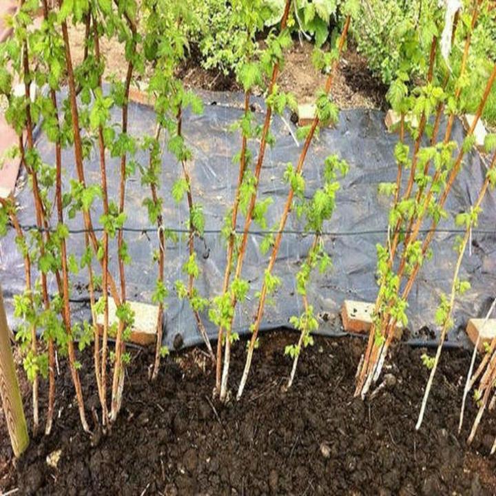 | Sadzenie malin | Przyciąć końcówki korzeni, wykopać dołki głębokie na 10 cm i szerokie na 20 cm, zachować odstęp 40 cm między roślinami. |