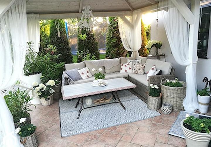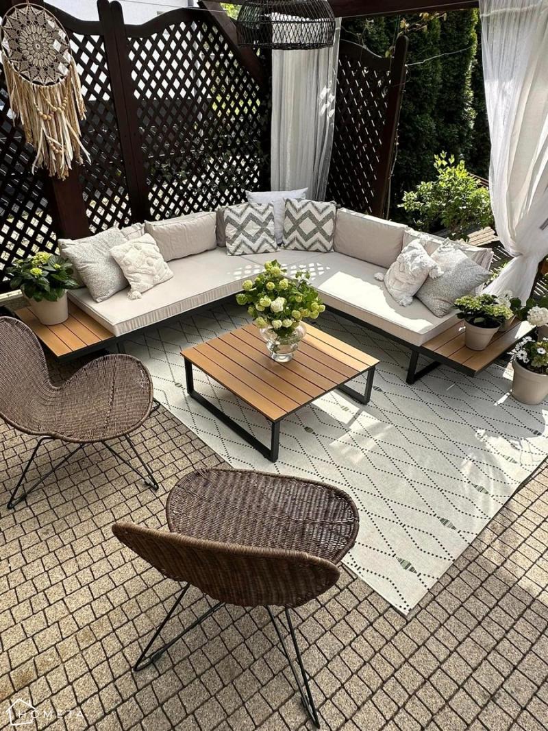 Naturalne materiały Rattan, wiklina, drewno – idealne do stworzenia sielskiego klimatu na tarasie.